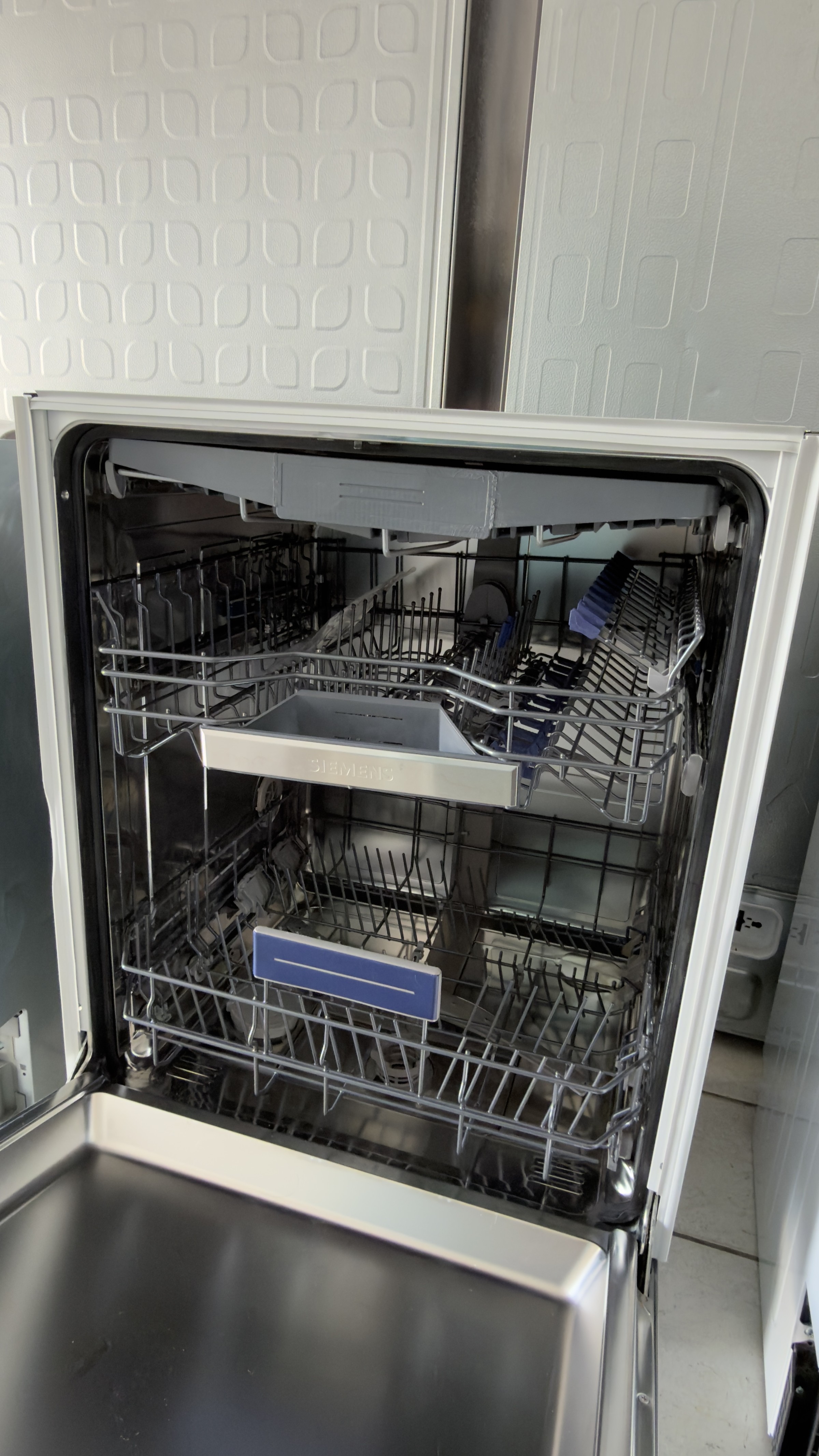 Mașină de spălat vase Siemens iQ500, complet incorporabilă, ideală pentru bucătării moderne.